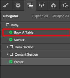 1. Go to Navigator Panel and double click on Book a Table element