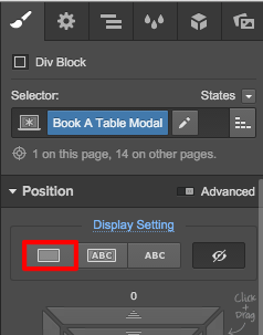 3. Thats it! The Book a Table Section will show up for you to edit. Don't forget to set again the element to Display none when done ; )